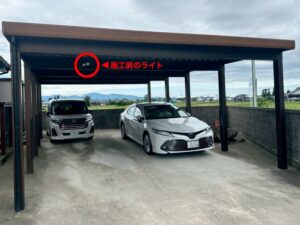 高松市で広めのカーポートを明るく!LED照明2台設置と便利なスイッチ増設の施工事例
